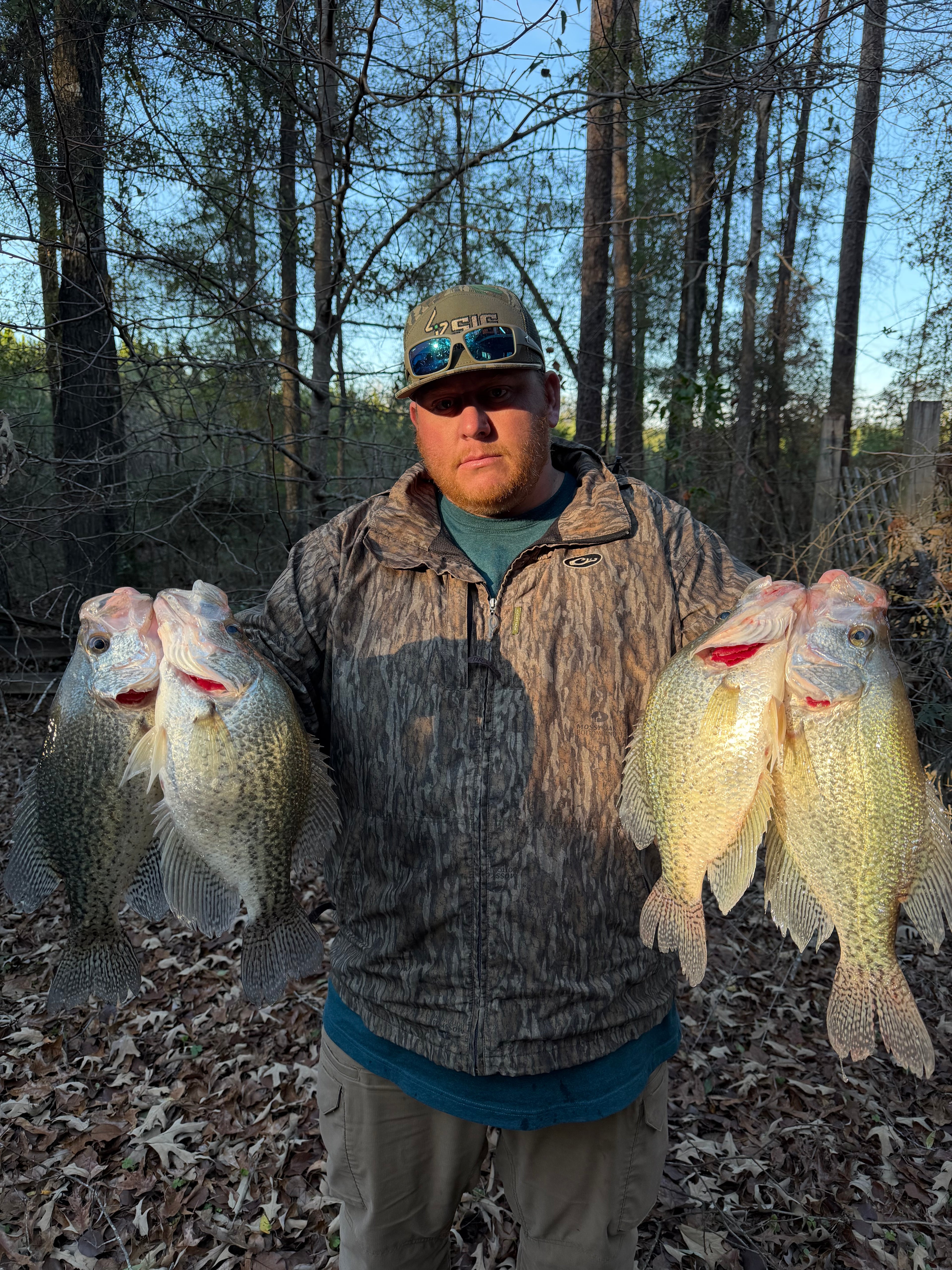 I have been an avid crappie fisherman for over 25 years. I have fished all over Alabama and Mississippi. I started off fishing with my dad and I still do to this day. I will do an occasional guided trip, but I enjoy taking my close friends fishing with me. I currently fish mostly the Alabama and Tombigbee River systems which offers a variety of different water clarities and different set ups for catching crappie. Whether it is muddy water tree tops on the Tombigbee, open water fish in clear water, or ledges on the stained water of the Alabama, I fish it. I understand color varieties and different techniques in different situations. One day one I told one of my friends that I needed to order more jigs and he said "why don't you just start tying them yourself?". So that's what I did. I started doing it just for myself, but I decided to branch out and see where it goes. I would love to help you catch more fish!
